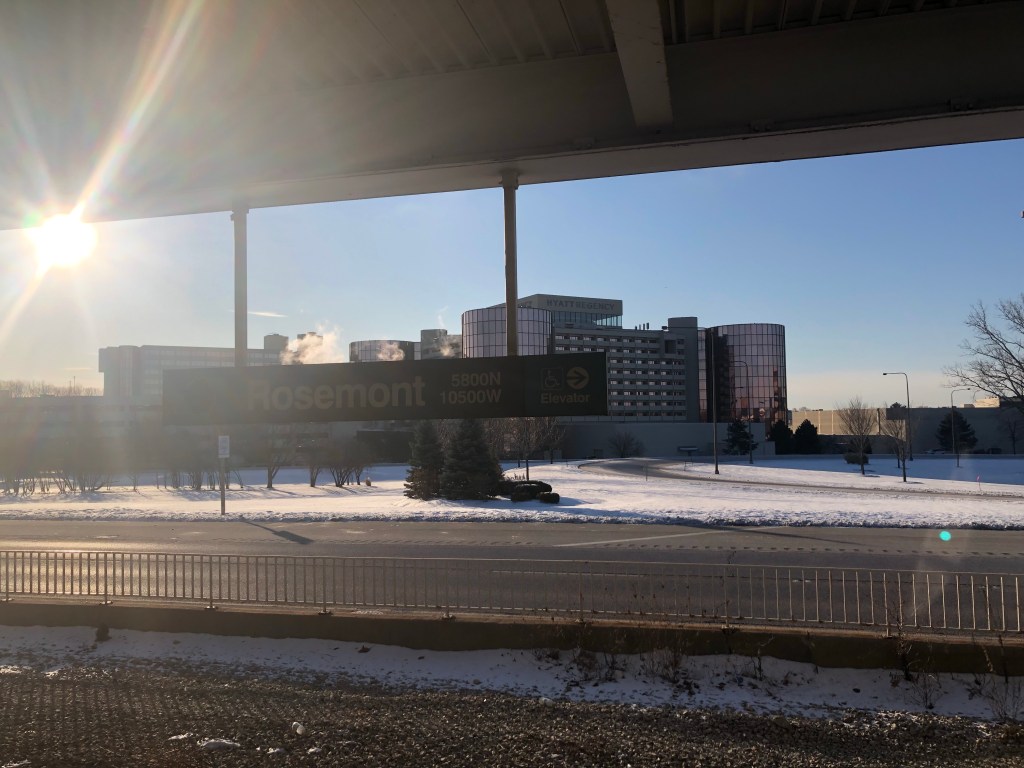 We had booked to stay at The Rose Hotel in Rosemont, maybe a ten to fifteen minute drive away, that luckily offered a free shuttle to and from the airport. Outside the airport is absolute chaos, with cars, buses and hotel shuttles circling along three lanes. Luckily, the hotel stayed in touch by phone, and our driver located us, as finding him was taking forever. Plus, we were seriously flagging at this point.
